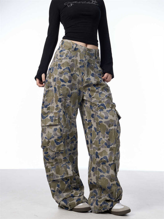 Camouflage Cargo Pants Women's Loose Straight Wide Leg Casual Pants