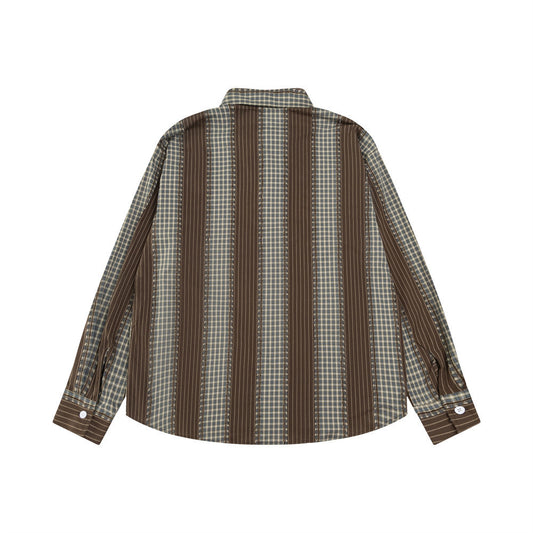 Color-contrast Check Long Sleeve Shirt For Men