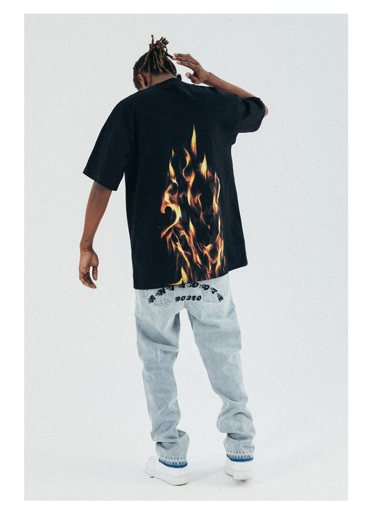 Fire T-Shirt Round Neck Men's Short Sleeve