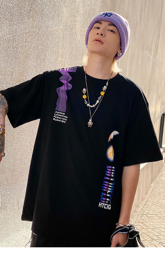 Loose Exploration Starry Sky Print Hundred Short Sleeves