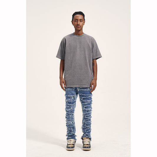 Washed Distressed 3D Cut Vintage Men's Slim Stretch Jeans