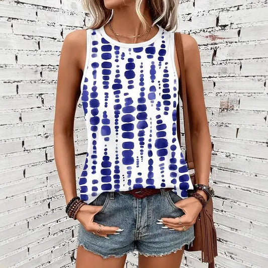 European And American Sleeveless Sexy Round Neck Print T-shirt Top For Women